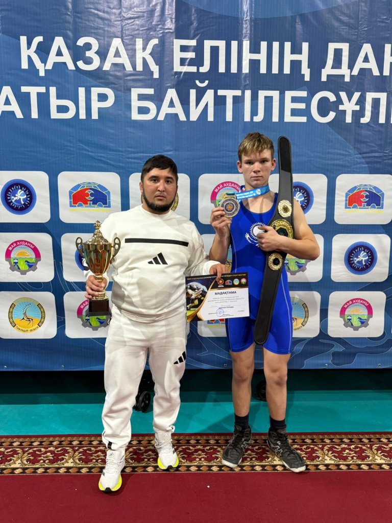 Павлодар облысы, Май ауданы, Көктөбе ауылында өткен Малайсары тархан Тоқтауылұлы мен Күшік батыр Байтілесұлы атындағы республикалық жарыста 62 кг салмақ дәрежесінде